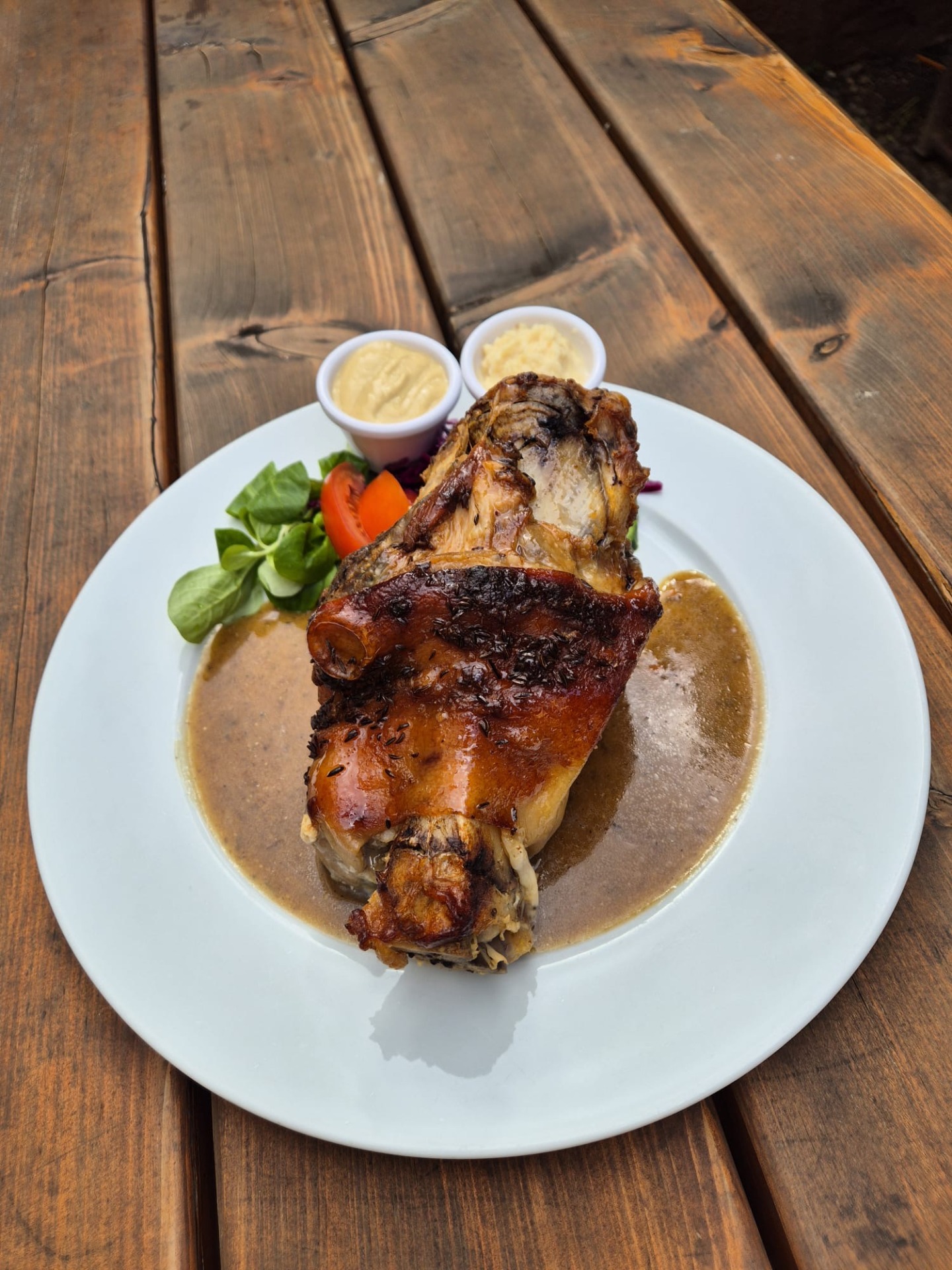 žebírka, vepřové a kuřecí řízečky, vepřové koleno, hořčice, křen